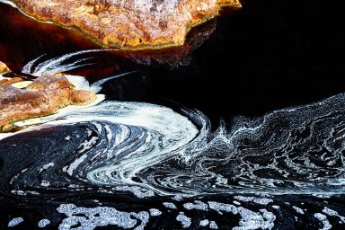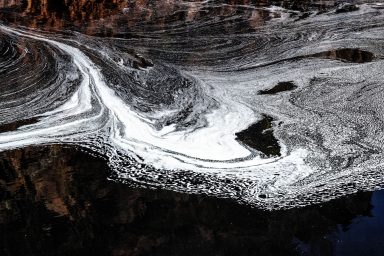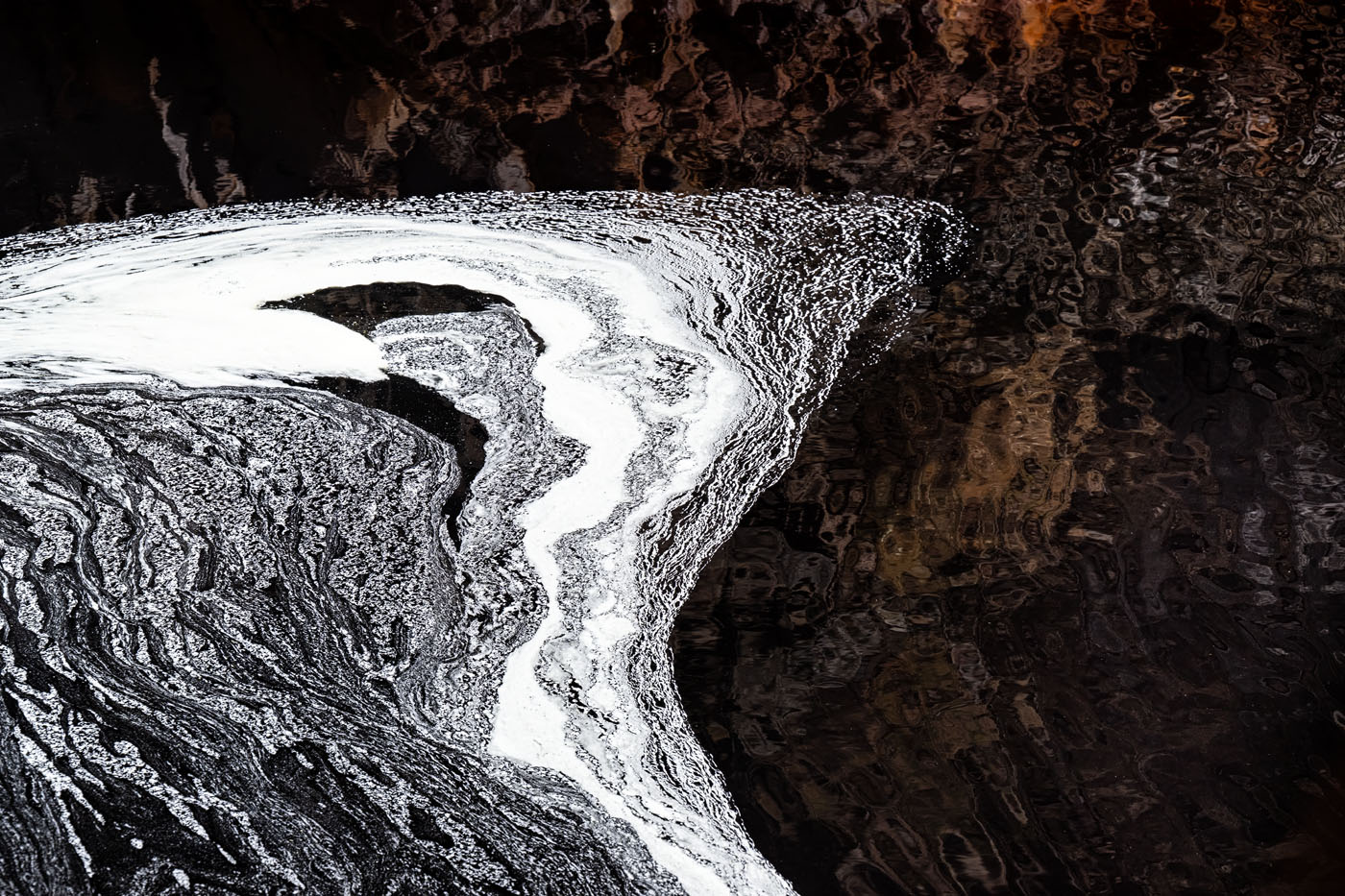 Tiny rapids and waterfalls add oxigen to the mineral-saturated water of the rivers thus creating white spray that forms imaginary characters and patterns.
